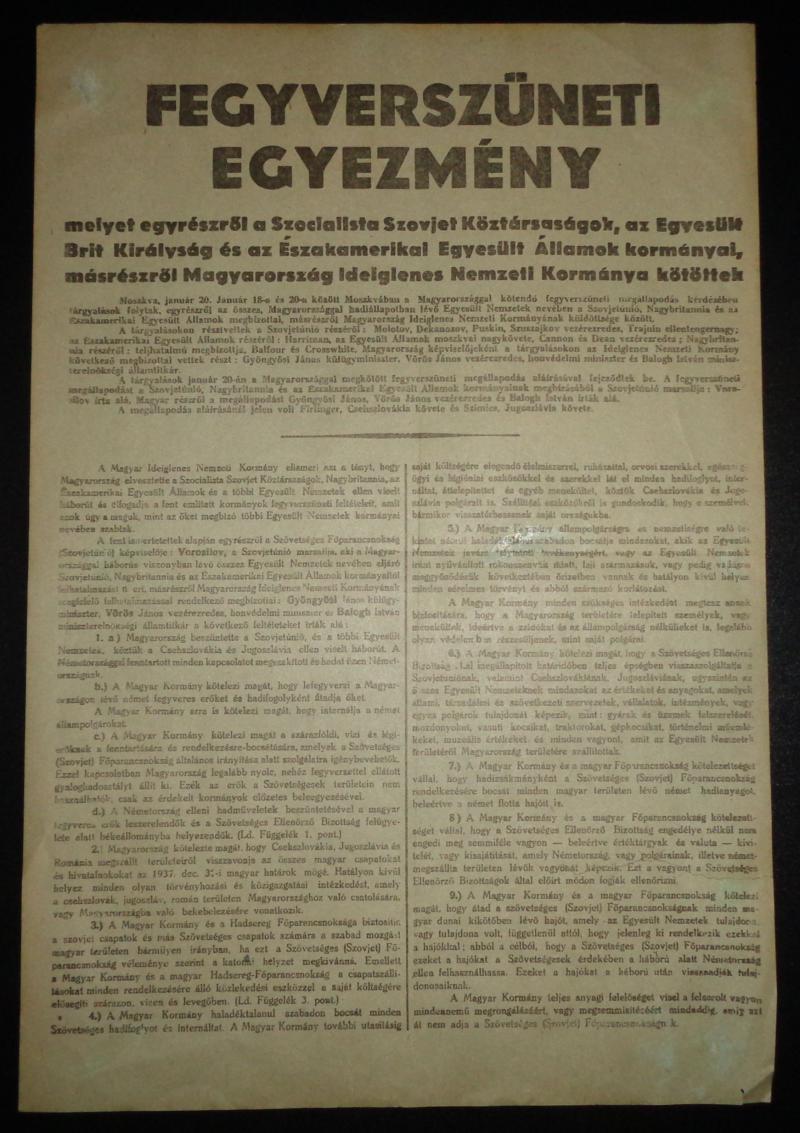 FEGYVERSZÜNETI EGYEZMÉNY! Moszkva. 1945 január