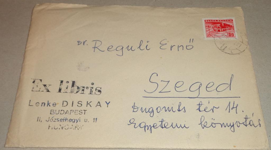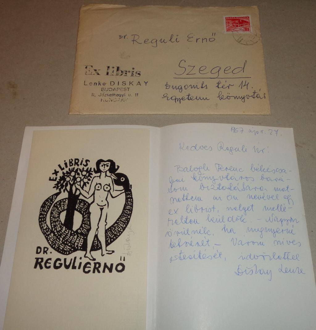 Hungarian put into the basket Diskay Lenke: Levele és ex libris-e Reguli Ernőnek, érdekes tartalommal.