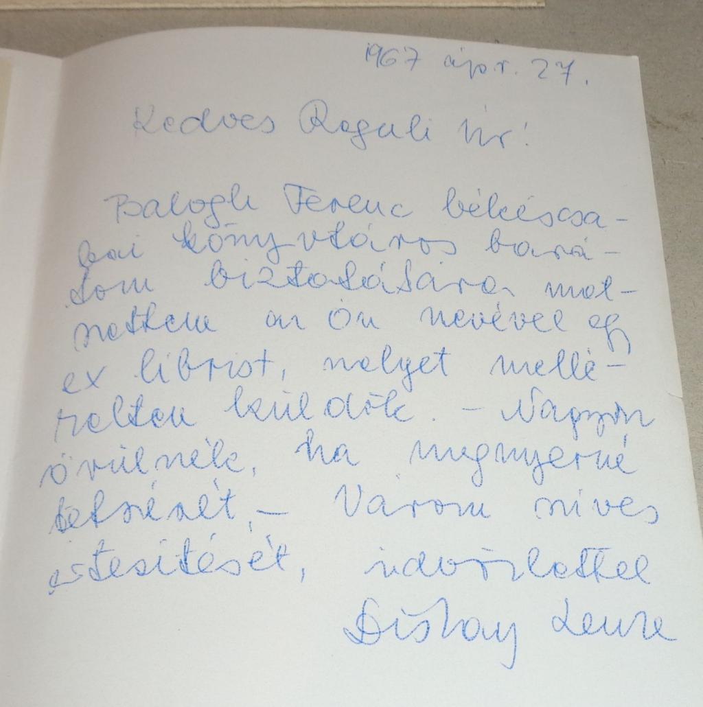 Kézírásos levél, kézzel szignált könyvjeggyel.