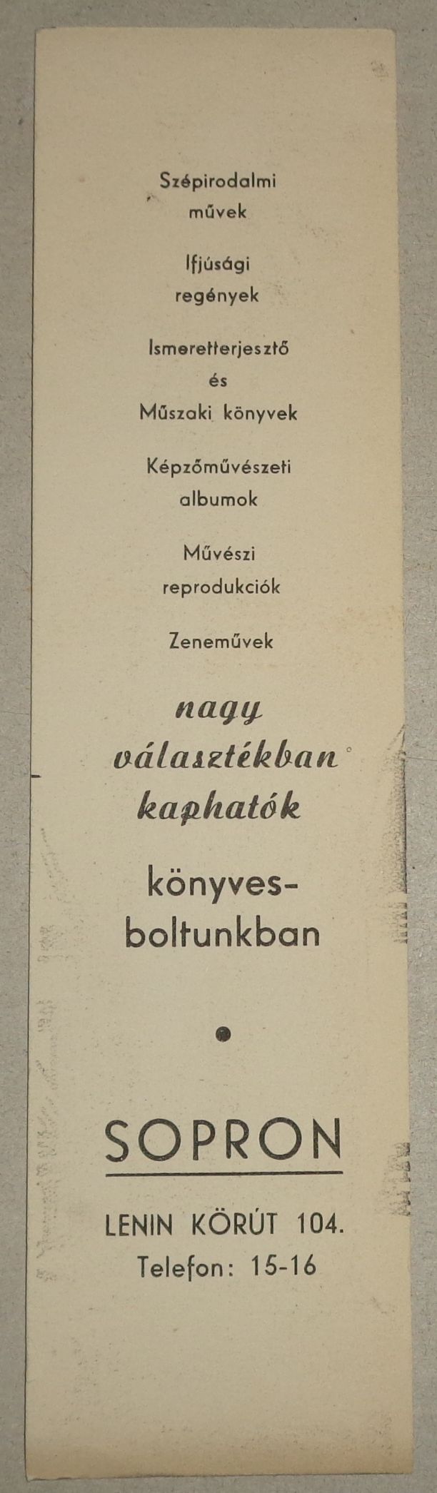 Könyvjelző: Sopron Berzsenyi Könyvesbolt