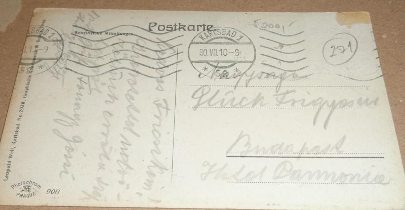 Fónagy József kézzel írott levelezőlapja Glück Frigyesnek.